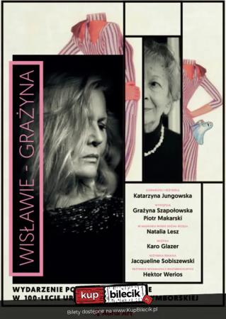 Na program wydarzenia "Wisławie-Grażyna" składają się m.in. takie wiersze jak: "Nic dwa razy się nie zdarza", "Portret kobiecy" czy "Muzeum", uzupełniane wspomnieniami o poetce. W rolę poetki noblistki wciela się Natalia Lesz (projekcja multimedialna).